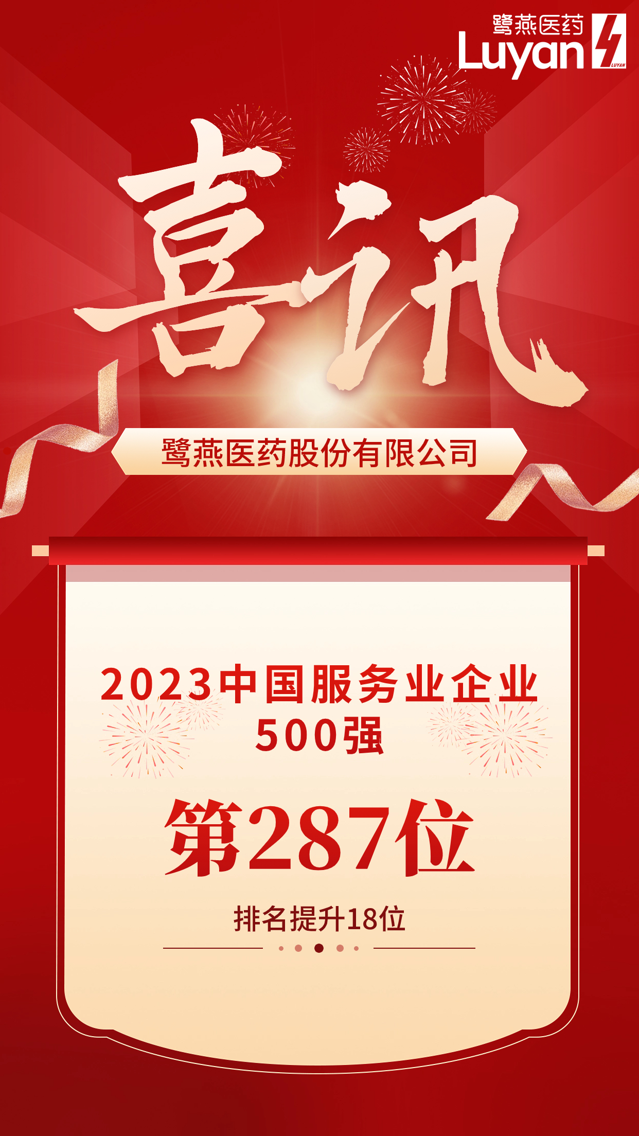 鷺燕醫(yī)藥榮列2023中國服務業(yè)企業(yè)500強第287位